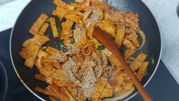 어묵이 살짝 익어갈 때쯤 양념장을 모두 넣어줍니다.