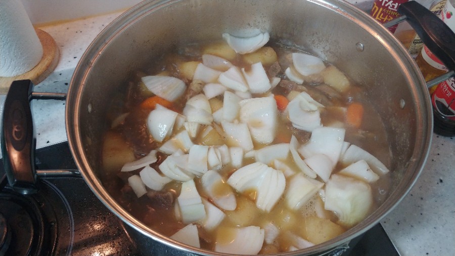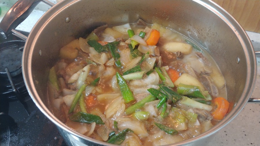 갈비가 저렇게 자작하게 잠길만큼 물도 추가 해주세요~