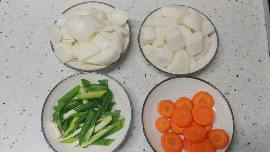 여기에서 무와 당근은 절단 면 부분이 각지지 않게 둥글게 깎아주는게 좋다고 합니다.